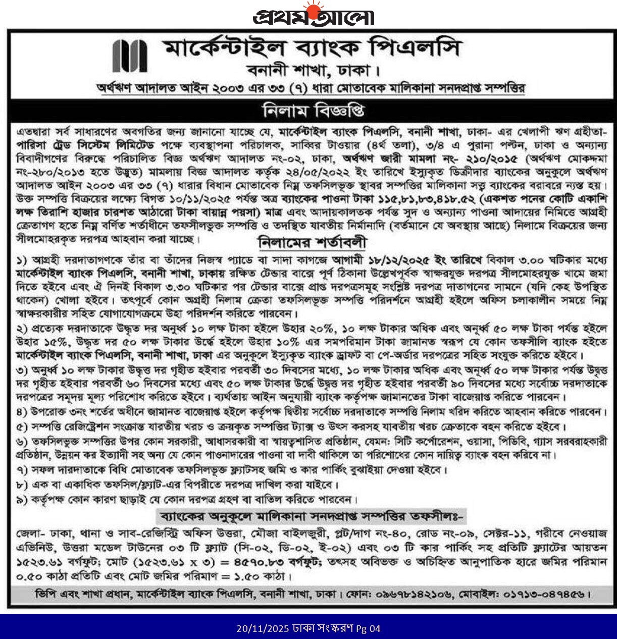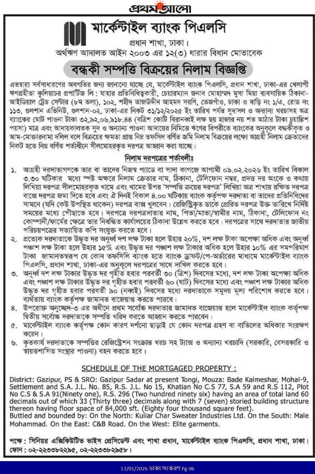 Auction U/S- 12(3)- A/C-: M/s. Kuliarchar Properties Limited |
