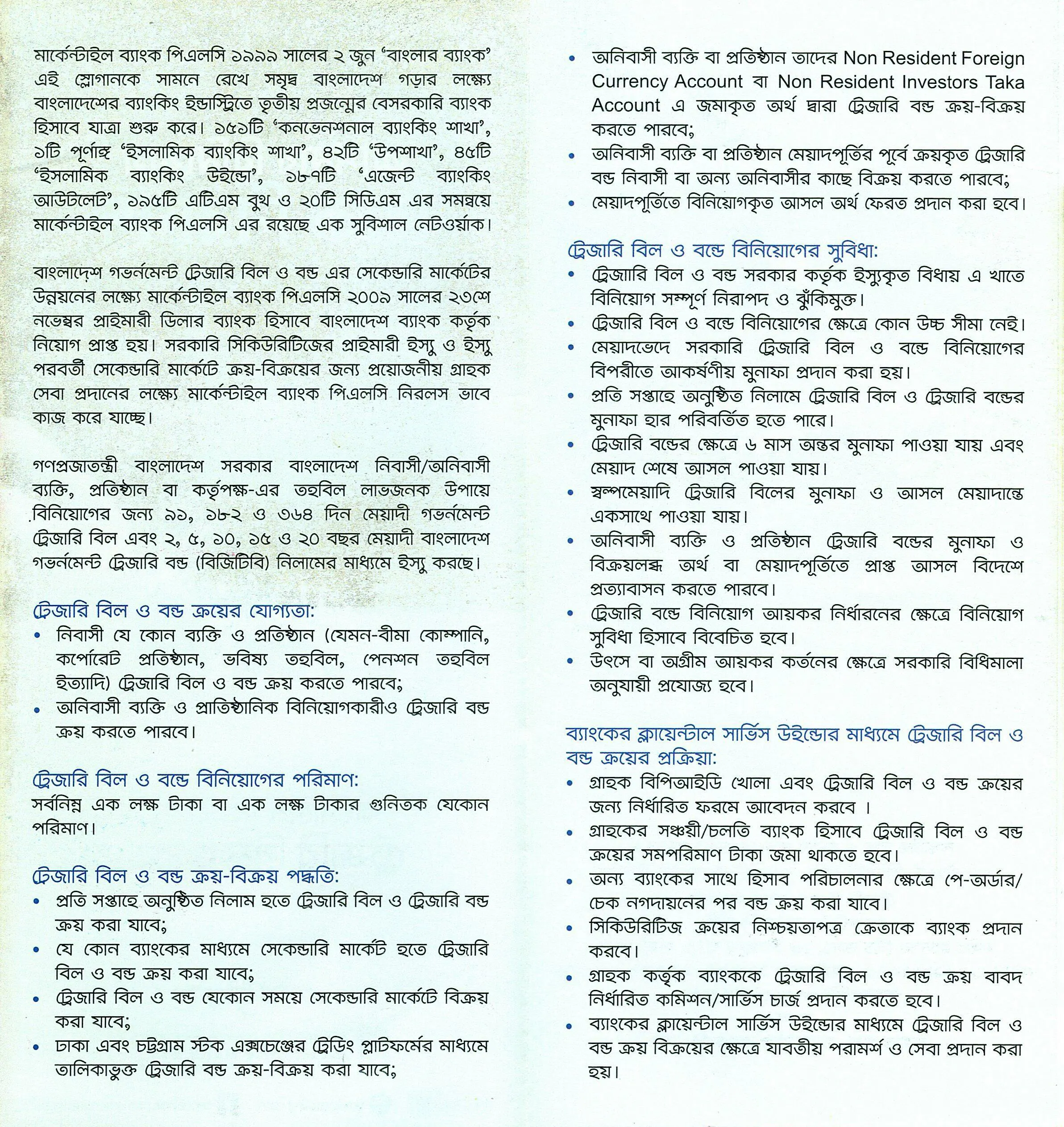 The following services are available at the Government Securities Investment Window of Mercantile Bank Limited -
